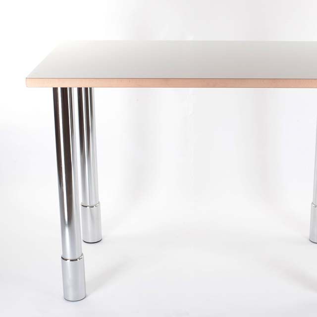 Customizable structures in chromed or painted steel and with wooden tops of different finishes, colors and sizes.